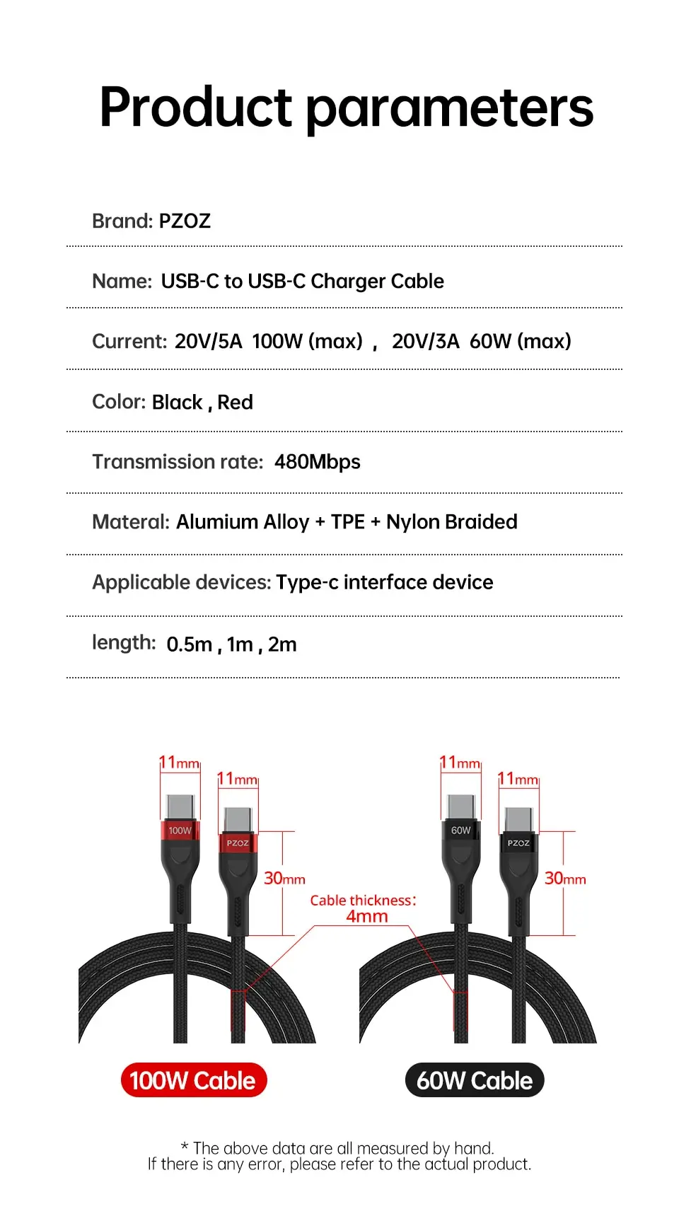 • PD 100W USB C To Type C Cable