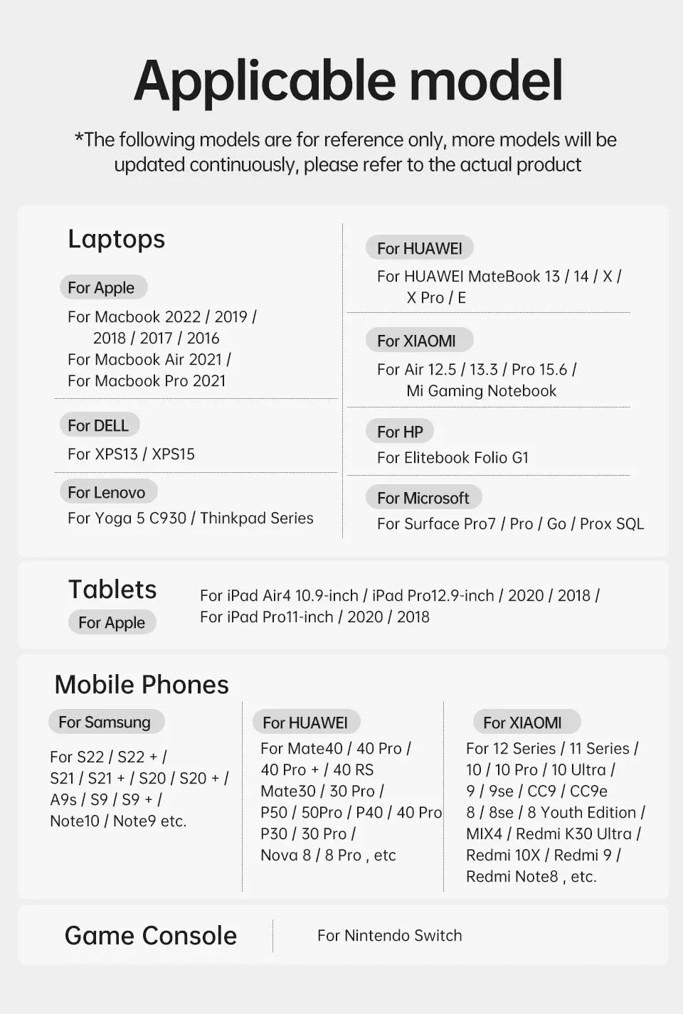 • For Huawei Xiaomi POCO Samsung Macbook